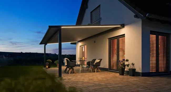 - Integrierte LED-Beleuchtung: Setzen Sie stimmungsvolle Akzente für gemütliche Abendstunden unter Ihrer Markise.